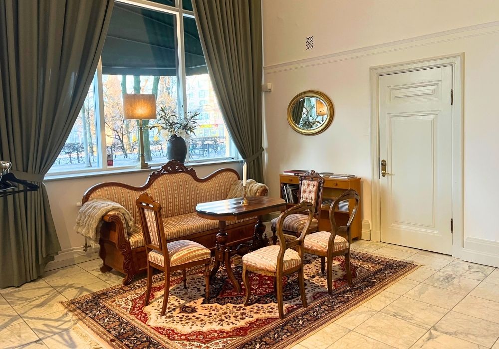 Vi värnar om en trivsam atmosfär i hela huset och av respekt för boende i fastigheten avslutas alla arrangemang senast kl. 22.00. Centralpalatset är därför inte en traditionell festlokal för sena kvällar, utan en plats för stämningsfulla sammankomster.